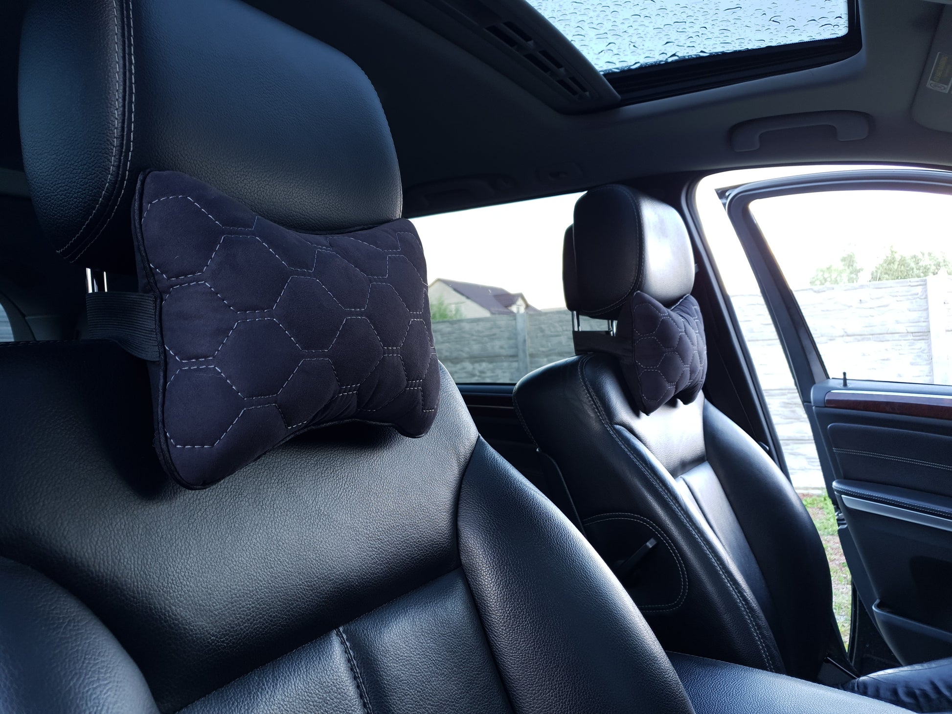 Poduszka samochodowa pod szyję z czarnej alcantary – komfort i styl
